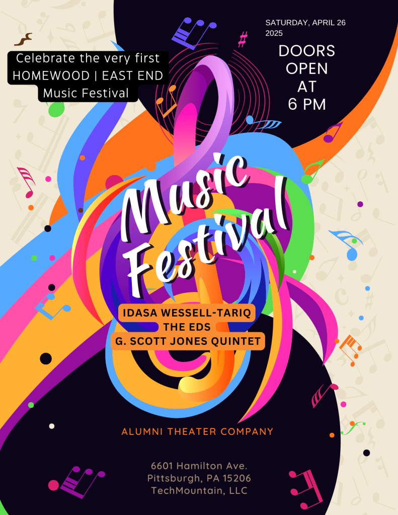 The Inaugural Homewood/East End Music Festival is a one-day event celebrating music, community, and revitalization in Pittsburgh’s Homewood and East End neighborhoods. Organized by TechMountain, LLC, this festival aims to bring together local musicians, artists, and residents to foster community engagement, economic growth, and social cohesion.